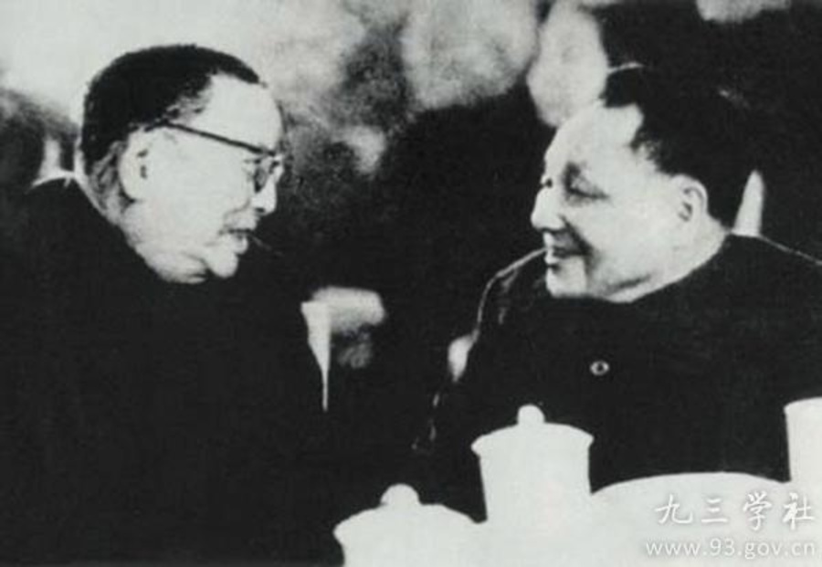 1981年2月,鄧小平與許德珩(左)在全國政協(xié)春節(jié)茶話會上親切交談。